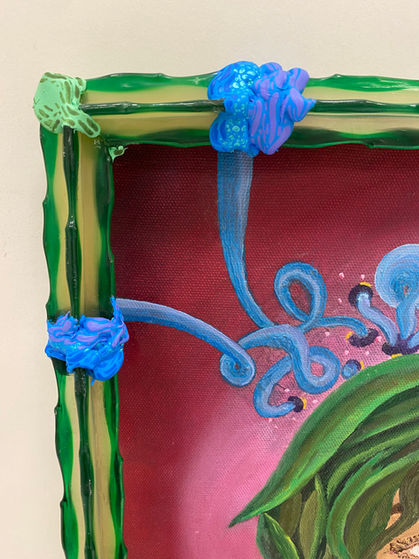 Peinture à l’huile sur toile, cadre en plastique, colle, peinture acrylique, tissus, laine